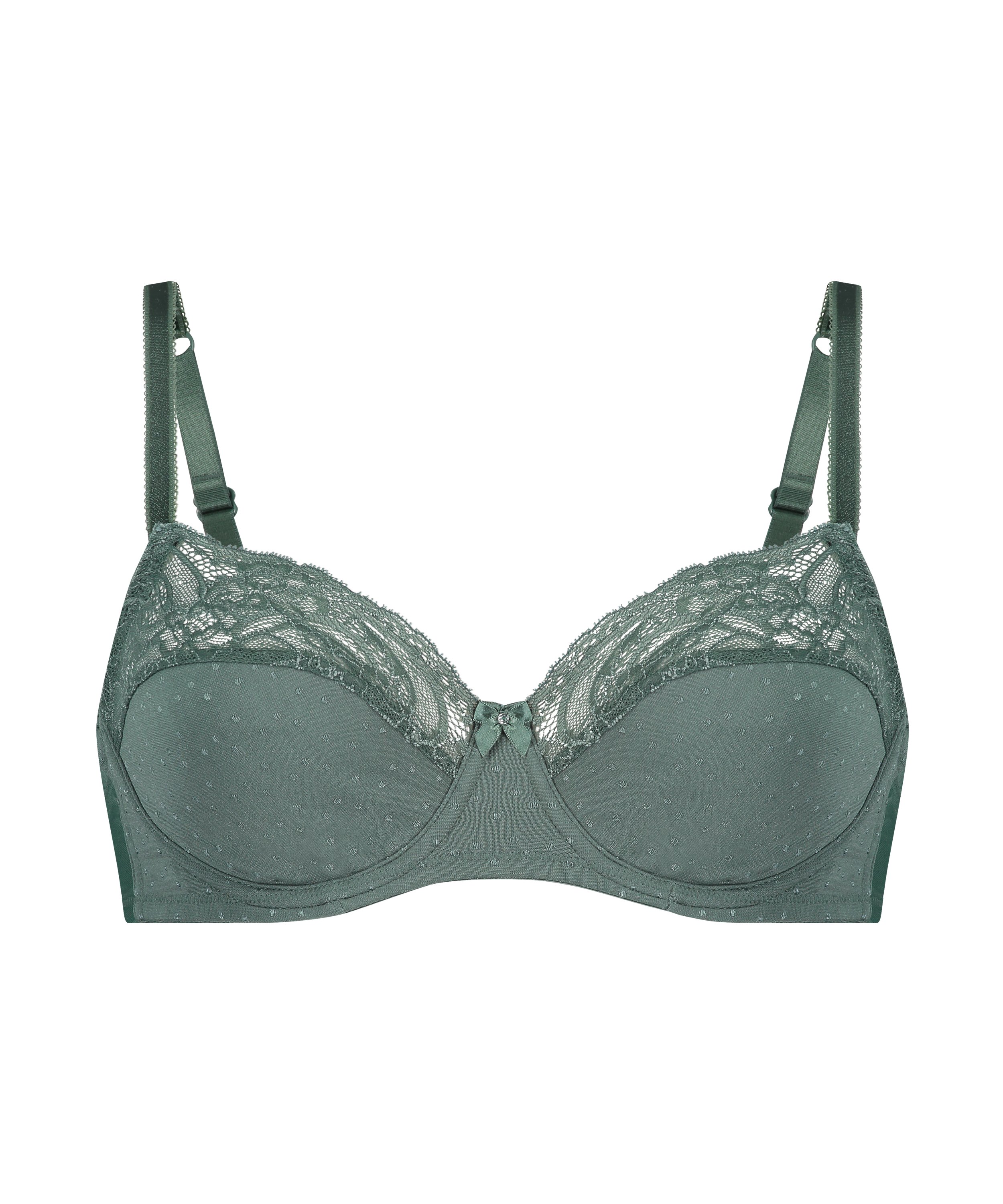 This underwired bra gives you extra comfort. The full cups are suitable for almost any woman. This bra gives you an elegant look and is also very comfortable to wear. Note: Cup sizes F and larger have an extra strip of fabric at the top of the cups to provide more support.