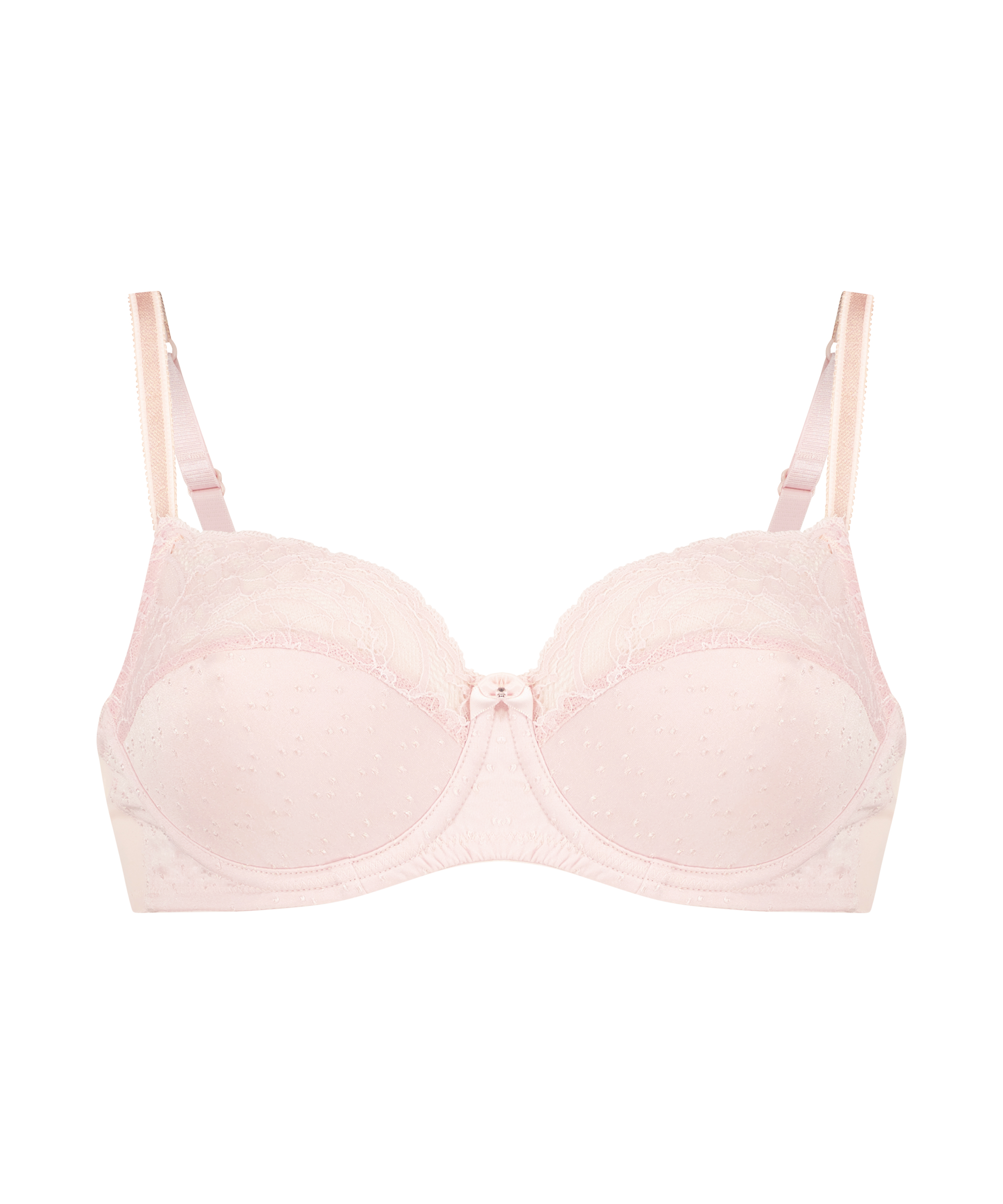 This underwired bra gives you extra comfort. The full cups are suitable for almost any woman. This bra gives you an elegant look and is also very comfortable to wear. Note: Cup sizes F and larger have an extra strip of fabric at the top of the cups to provide more support.