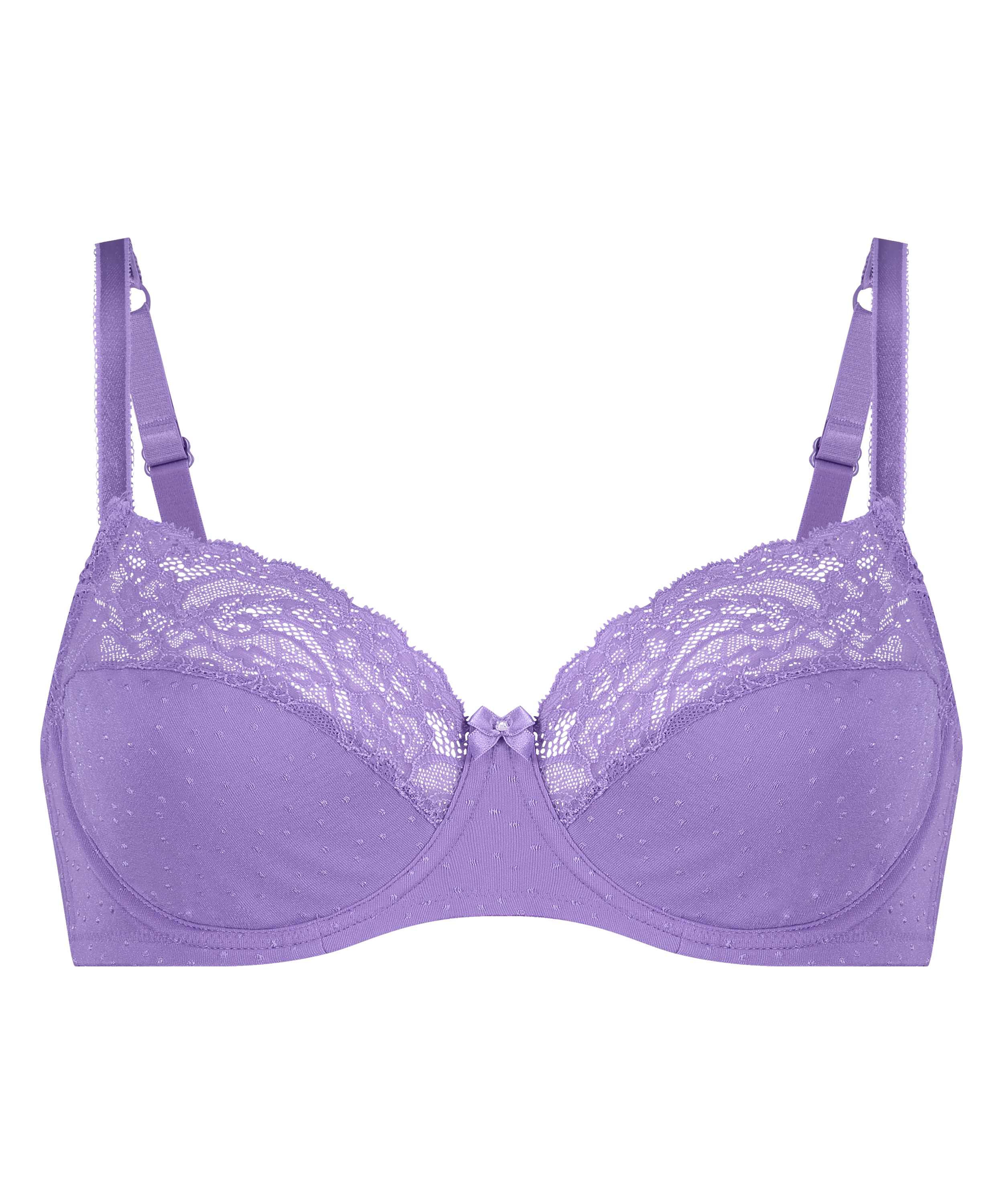 This underwired bra gives you extra comfort. The full cups are suitable for almost any woman. This bra gives you an elegant look and is also very comfortable to wear. Note: Cup sizes F and larger have an extra strip of fabric at the top of the cups to provide more support.