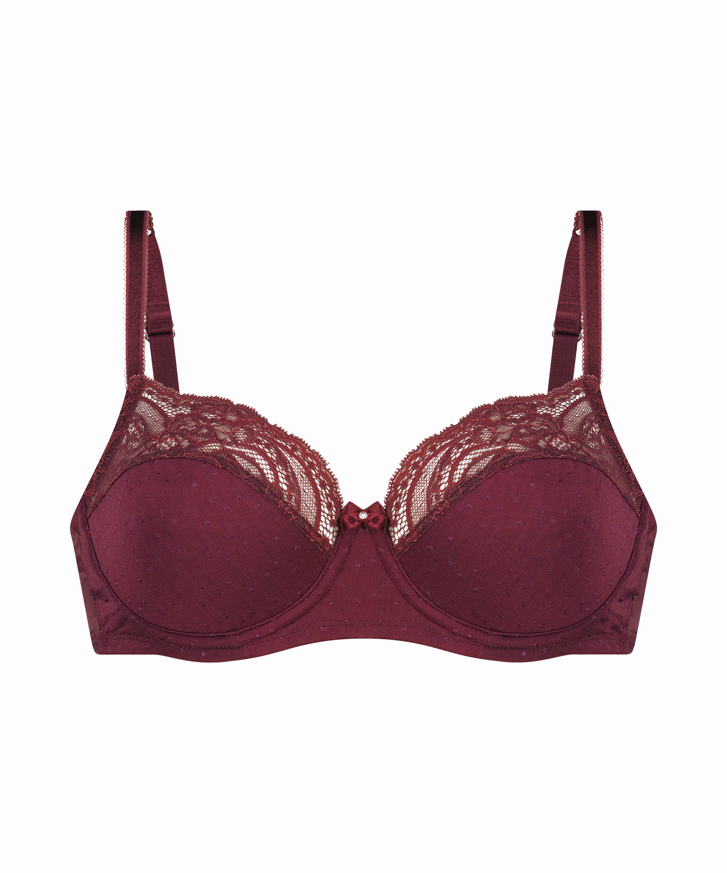 This underwired bra gives you extra comfort. The full cups are suitable for almost any woman. This bra gives you an elegant look and is also very comfortable to wear. Note: Cup sizes F and larger have an extra strip of fabric at the top of the cups to provide more support.
