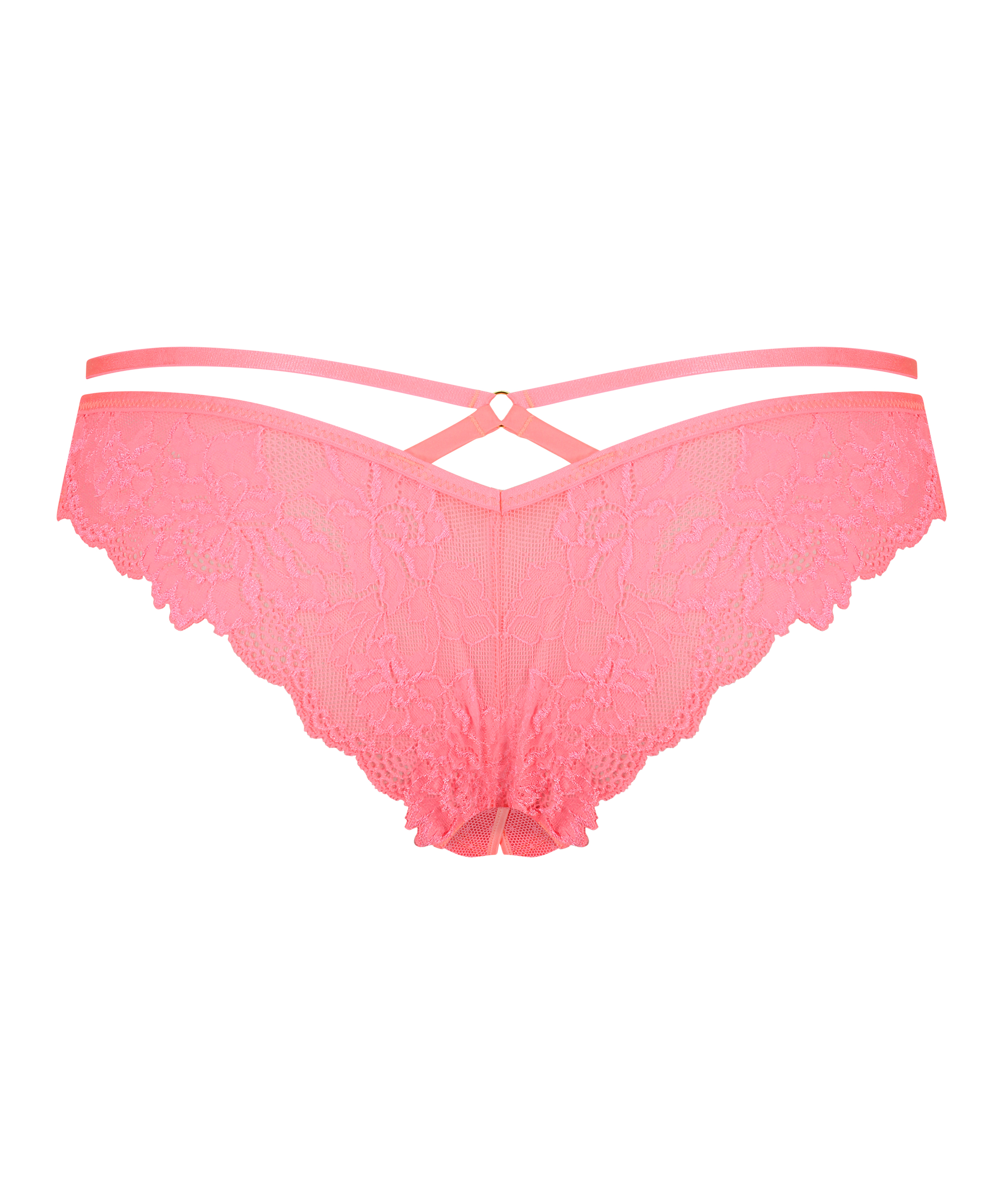 Go for a sexy strappy look with these Brazilian knickers with extra straps. They are finished with lace for an even sexier look. You’ll look irresistible.