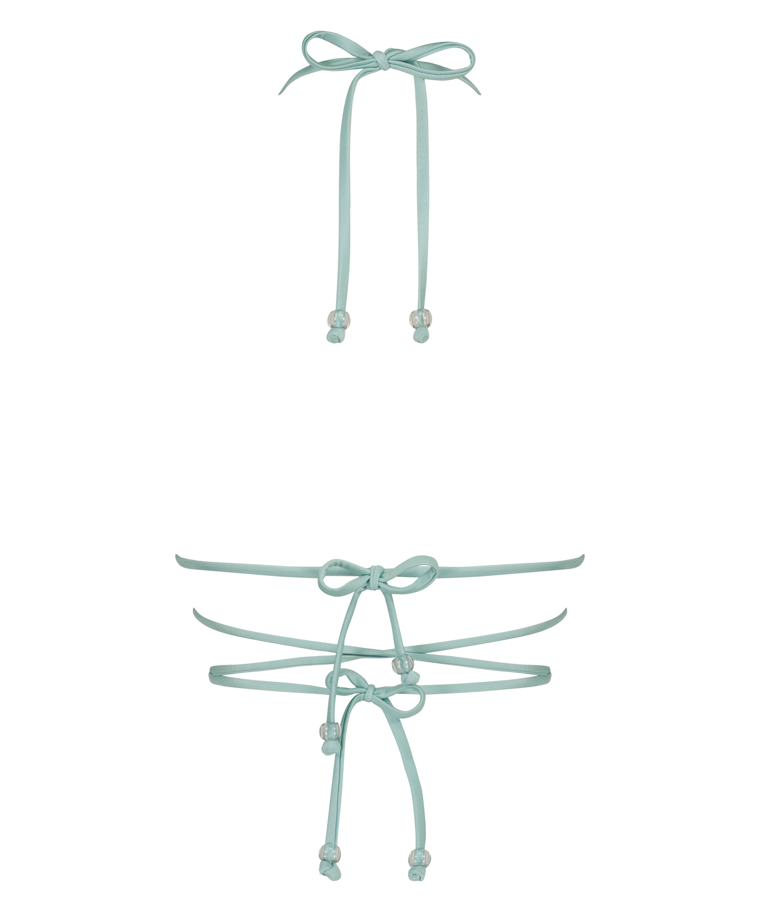 Show off your best bikini with this triangle! With a neck and back tie closure for easy wear and adjustments. Between the breasts there is a ring decoration, showcasing waist strappy details. You can wear the style in multiple ways to fit your taste perfectly. Pair with the matching bottoms!
