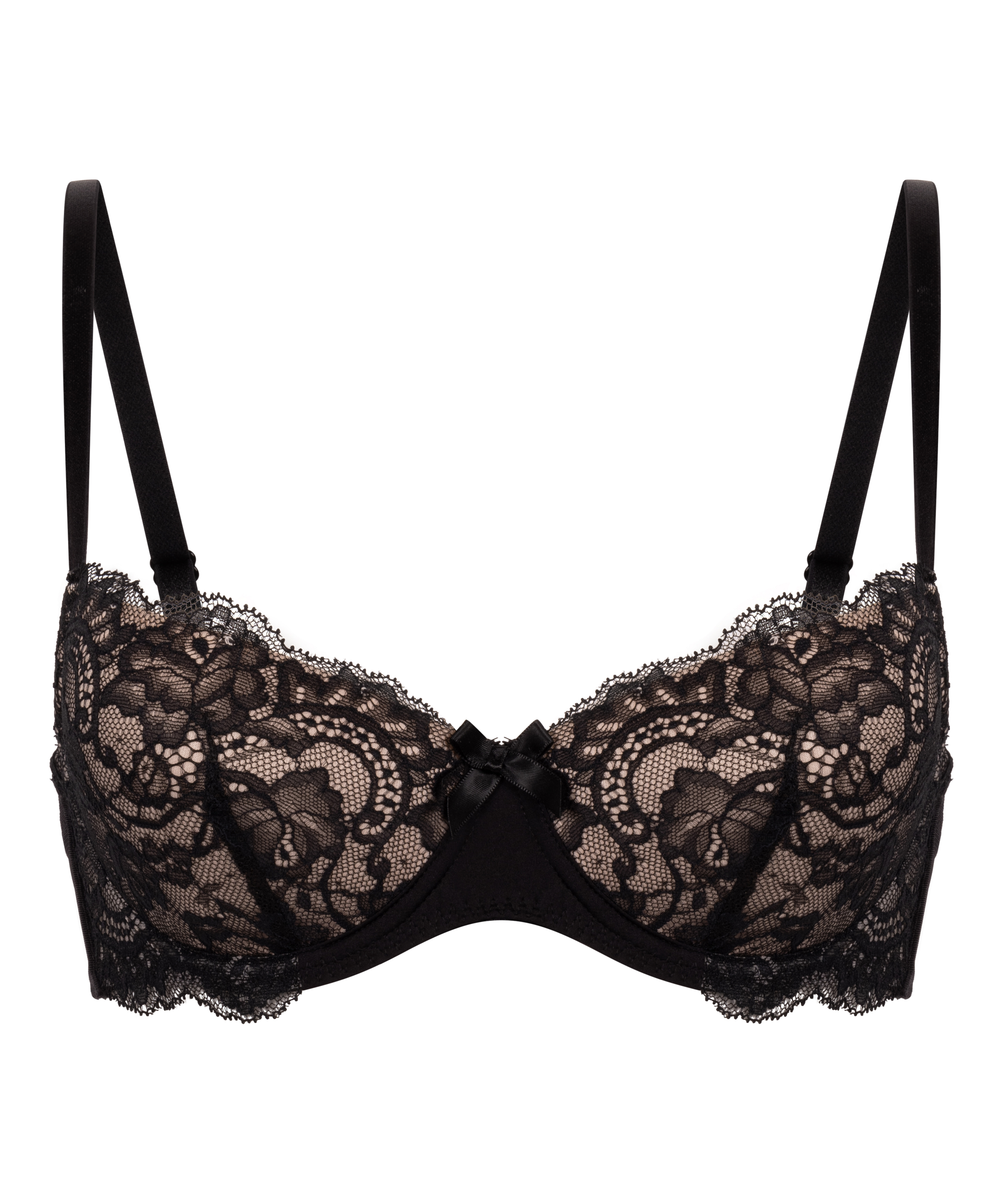 This is the perfect bra for you! The underwire bra has padded cups and the shoulder straps can be adjusted to suit you. The bra is finished with lace and a bow between the cups.