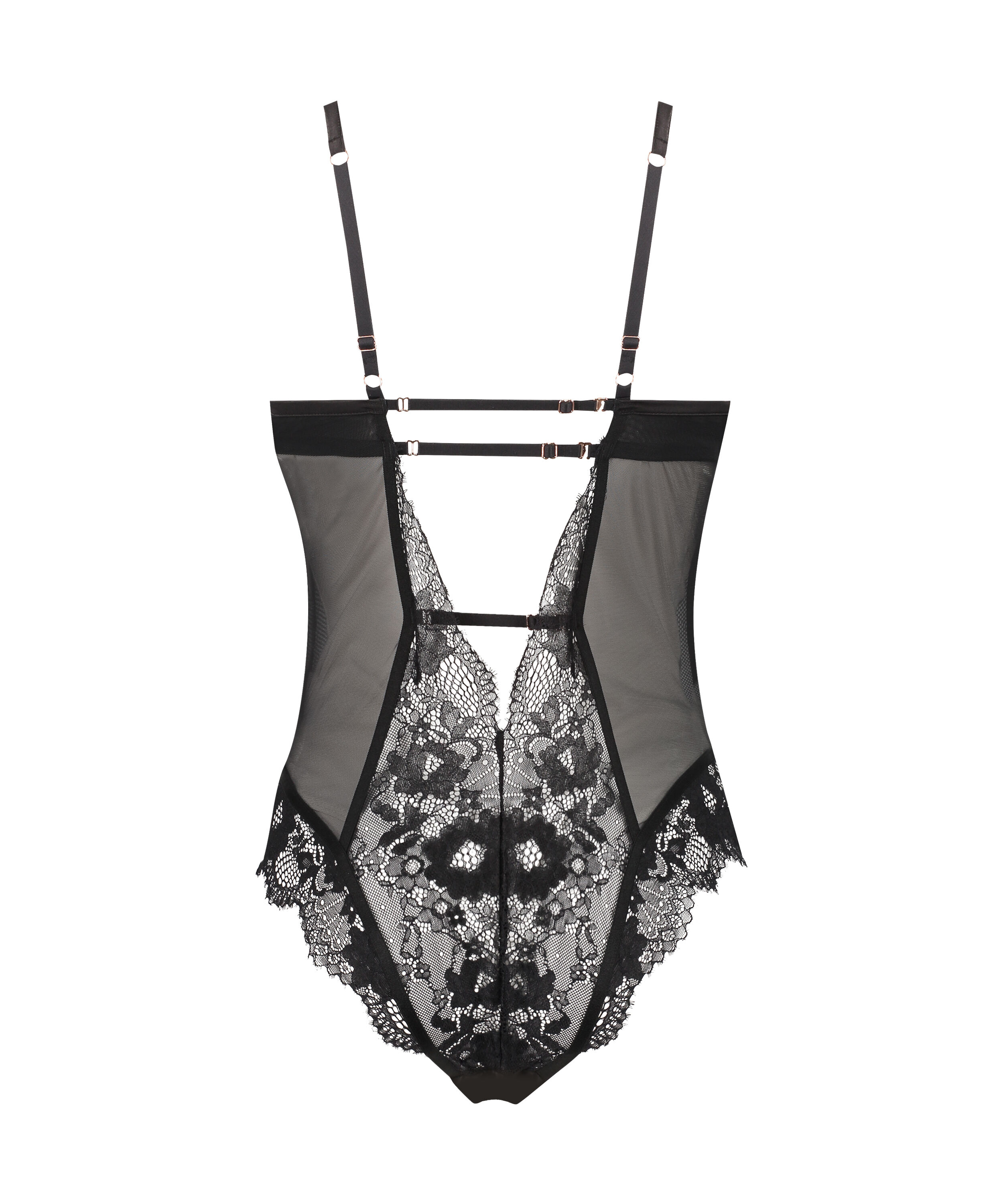 Pure temptation: this sexy thong is made using semi-transparent lace. On the front, a light green colour shows through the lace for an attractive colour effect. The adjustable bows on the hips with hidden elastic bands add extra comfort. Add matching items from the Match Tips for a complete lingerie set.
