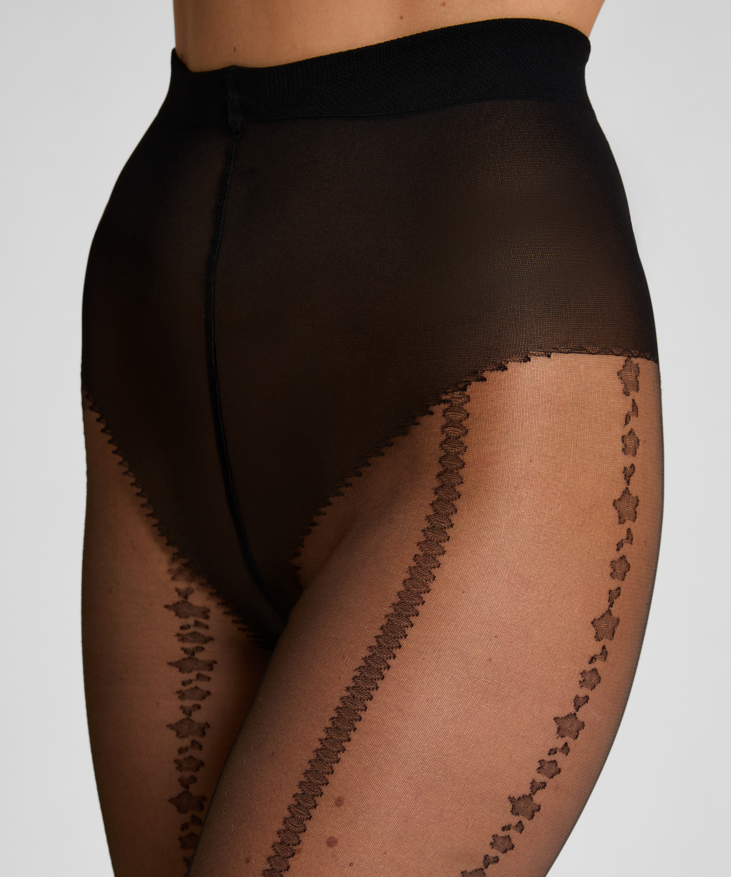 Step up your style with our 15 denier graphic line tights, designed to make a statement while keeping you comfortable all day. The sleek linear pattern adds a touch to your look, while the integrated brief panel ensures a smooth, supportive fit. Finished with a reinforce toe to add durability, these tights are the perfect blend of fashion and function - ideal for elevating everyday outfits or adding a graphic twist to evening wear.