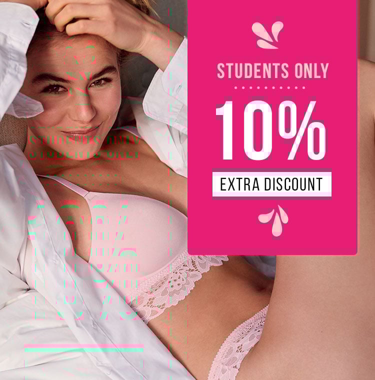 At Hunkemöller students get 10% extra discount in the store. You can shop everything on your wish list now with 10% discount. Time to shop that new lingerie set you’ve had your eye on for months. With this discount it might fit in your student budget. Shop not only lingerie, but also swimwear, sport, nightwear, nice accessories and many more with discount. The best thing is: you can combine it with our other promotions!