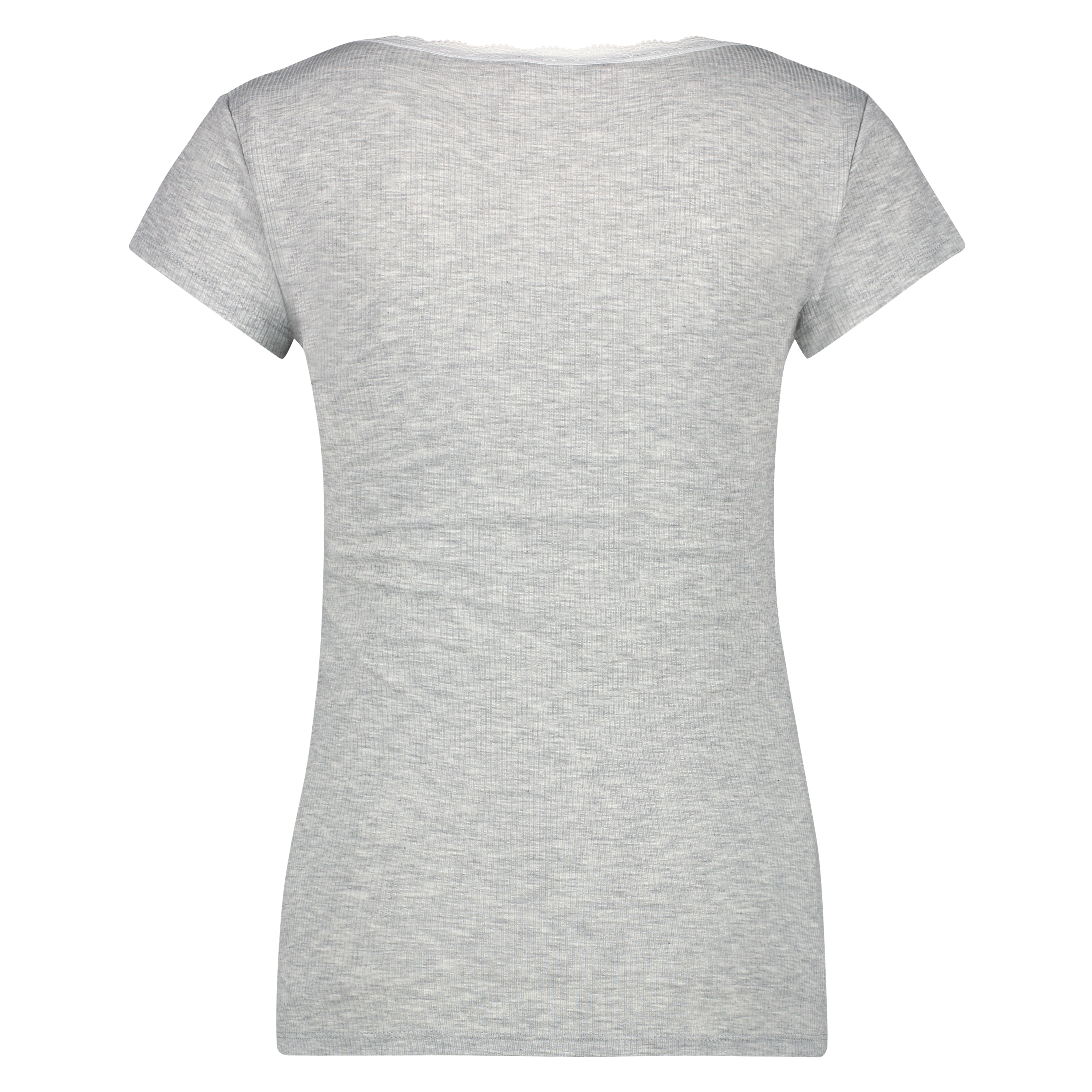 If you you're looking for a pretty top with a lovely fit, take a look at this short-sleeved top featuring ribbed fabric and a V-neck finished with lace edging.