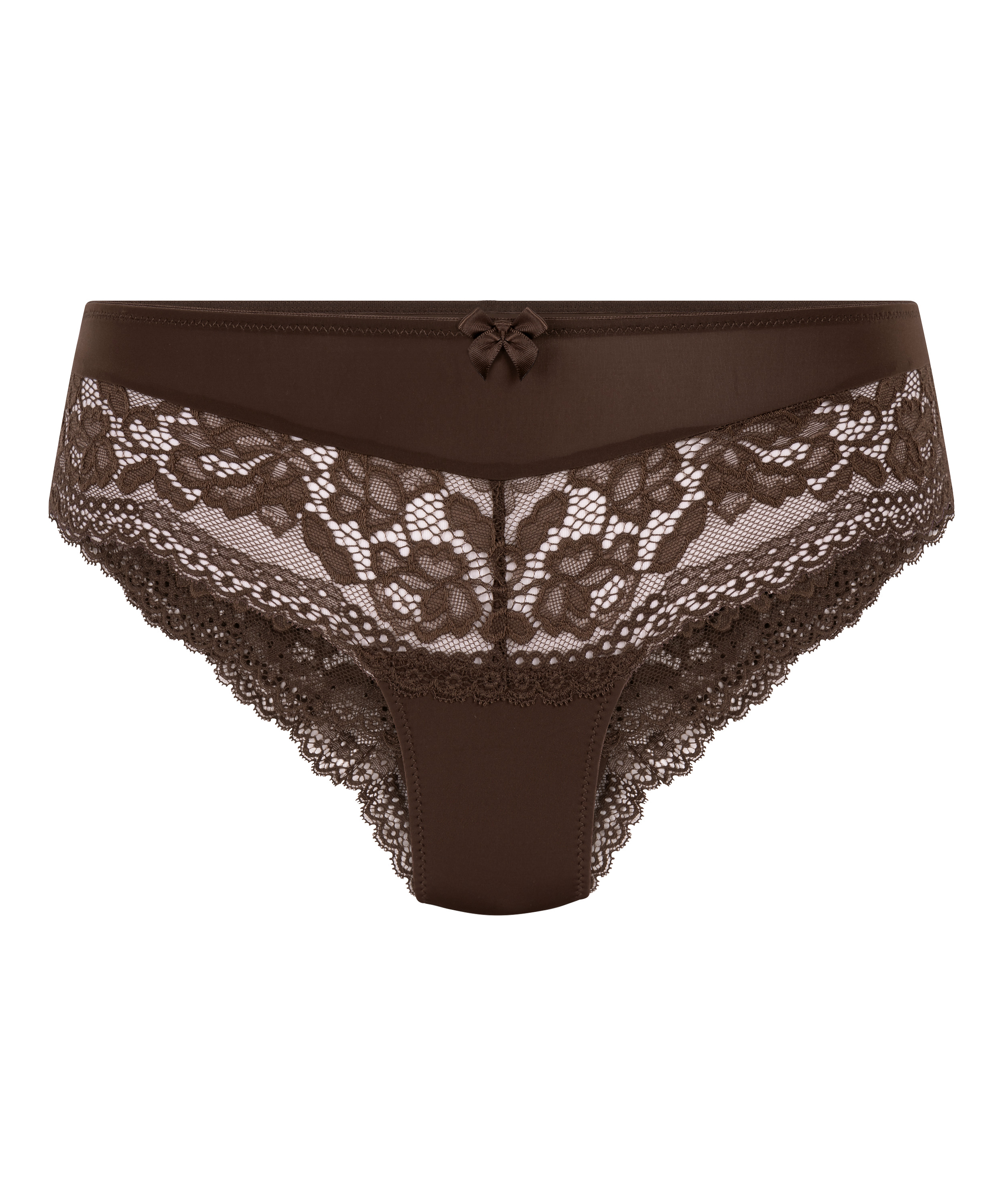 Opt for comfort with these beautiful Brazilian knickers. The Brazilian knickers are trimmed with lace and a small bow at the front. You can combine these knickers with many items, so they are a must-have in your collection! This super comfortable essential has a new and improved hand feel, very soft and stretchable. With a beautiful flower pattern lace which makes this style extra fashionable.