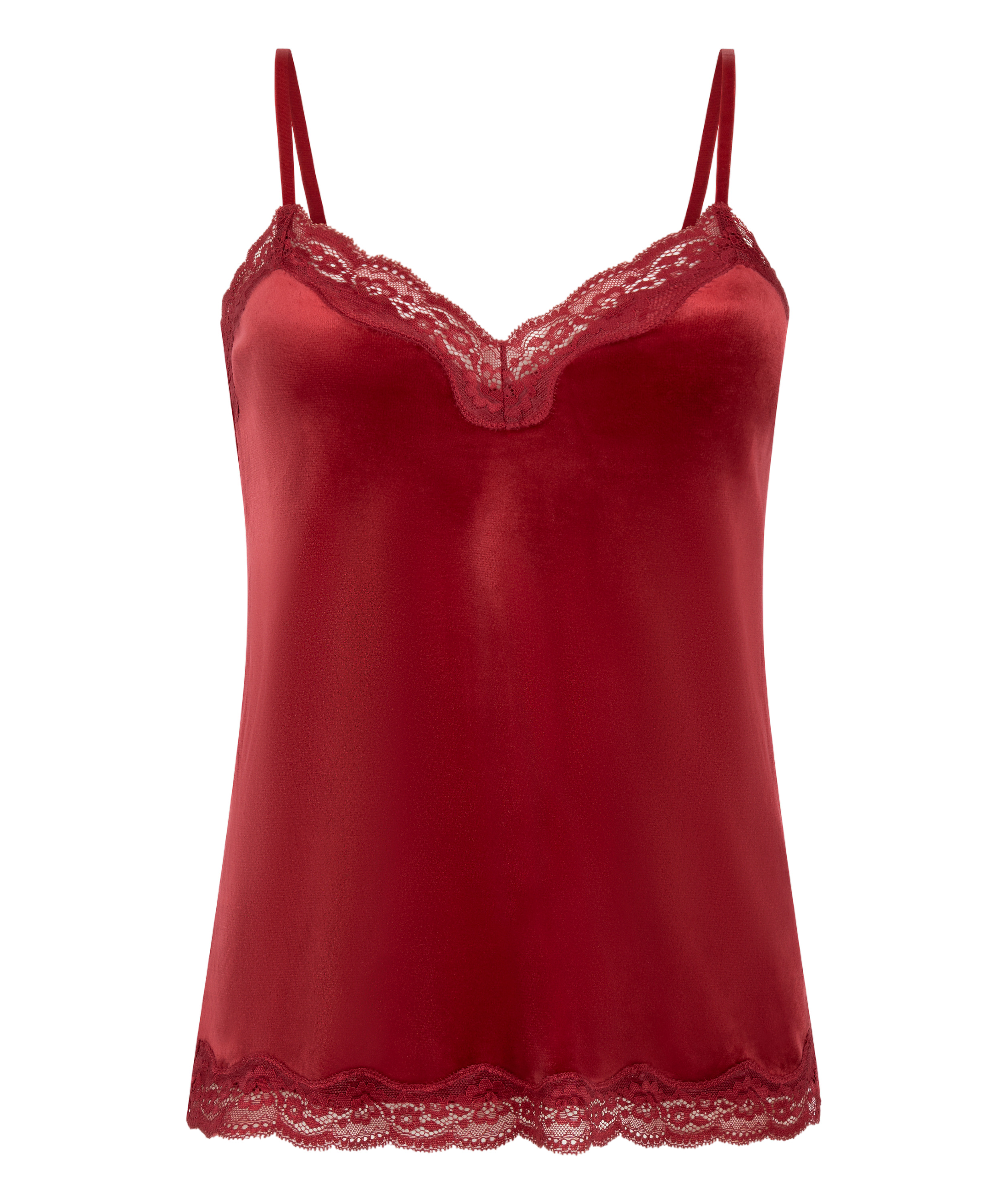 Feel super sexy and feminine with this soft top! The top is made of a velvet fabric and is finished with lace. Combine with matching items.