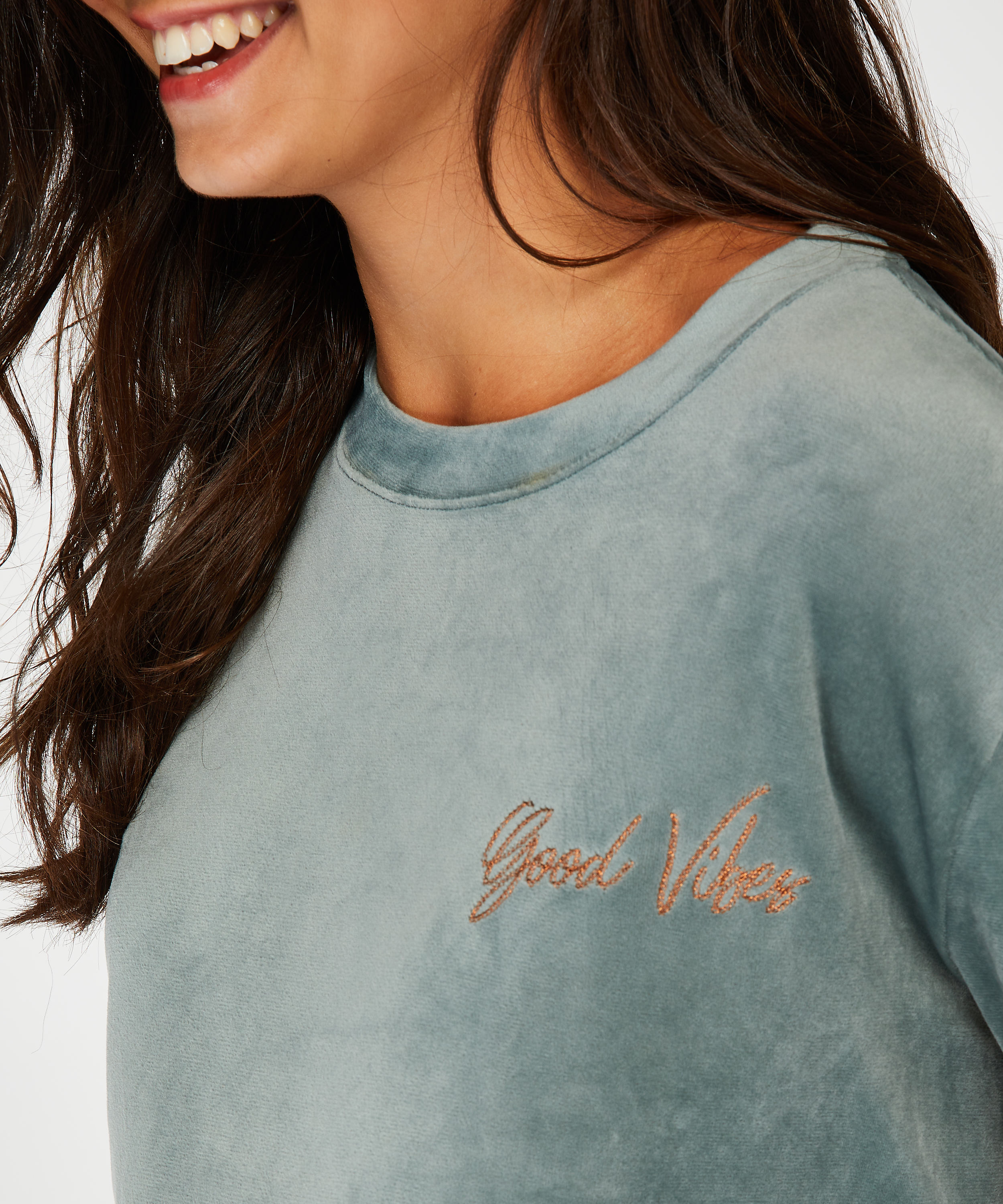 You just want to wear this super soft velvet top during your pregnancy! There's plenty of room for your growing tummy. Combine with the matching trousers.