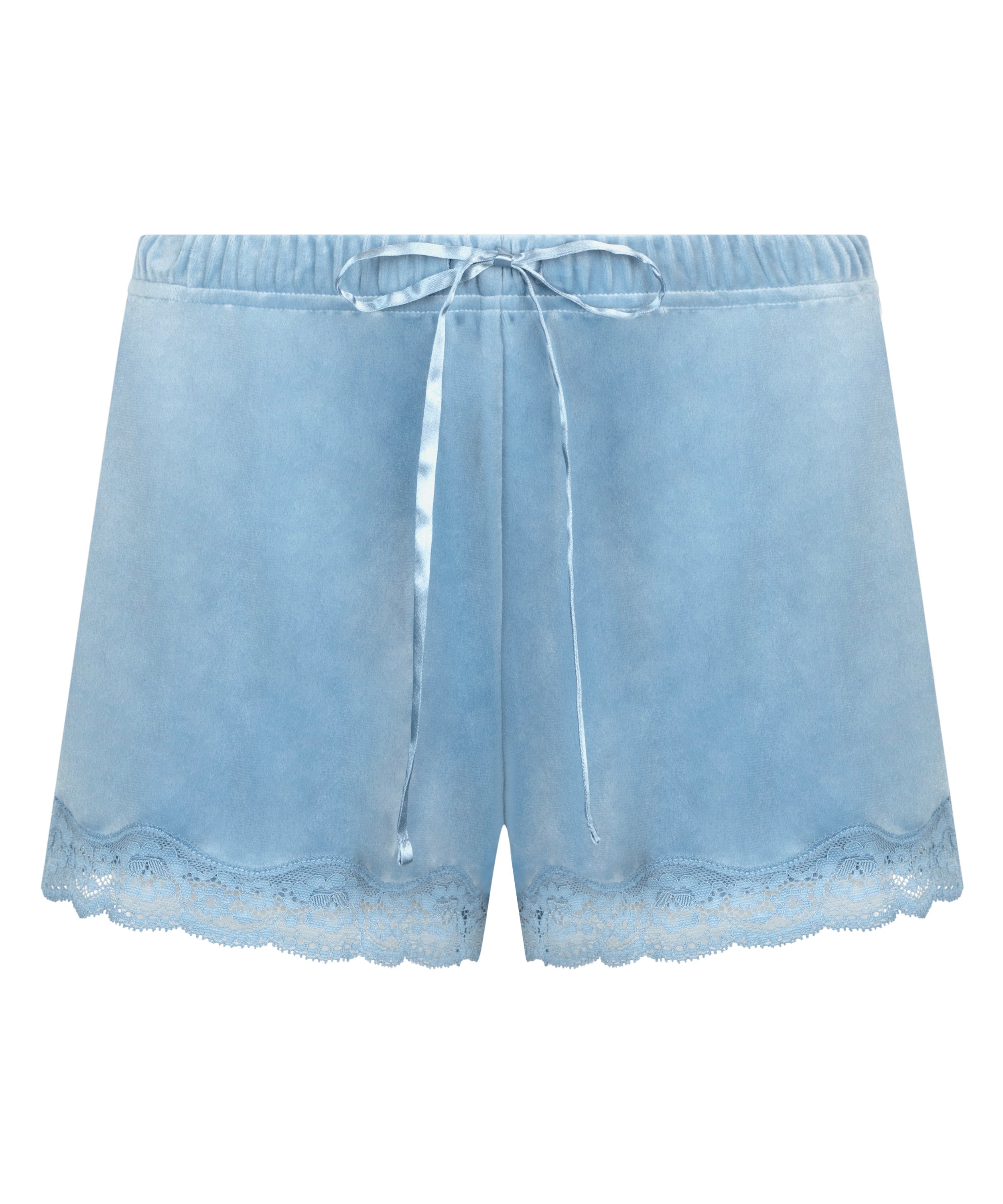 Feel super sexy and feminine in these soft shorts! The shorts are made of velvet fabric and finished with lace. Combine with matching items.