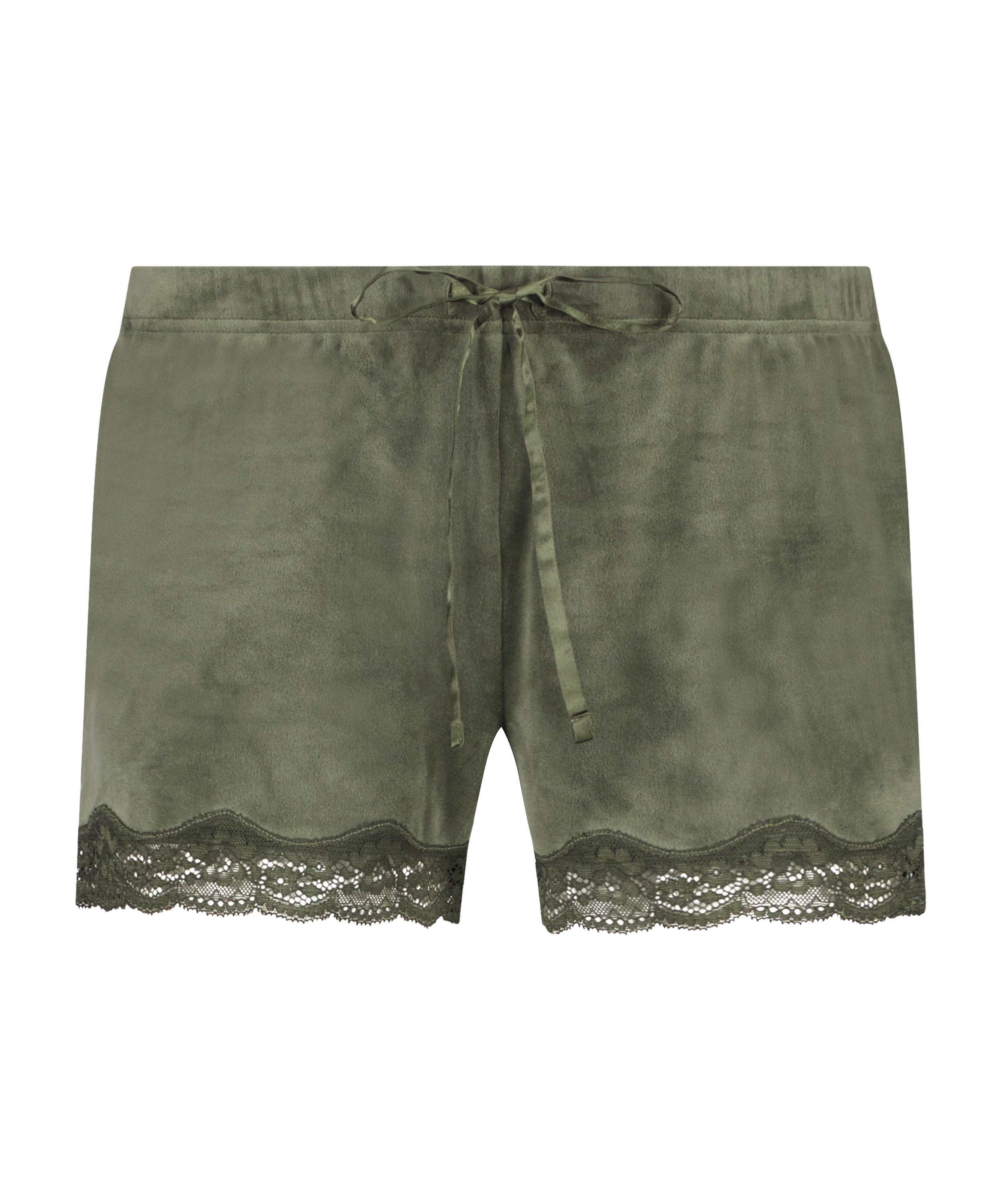 Feel super sexy and feminine in these soft shorts! The shorts are made of velvet fabric and finished with lace. Combine with matching items.