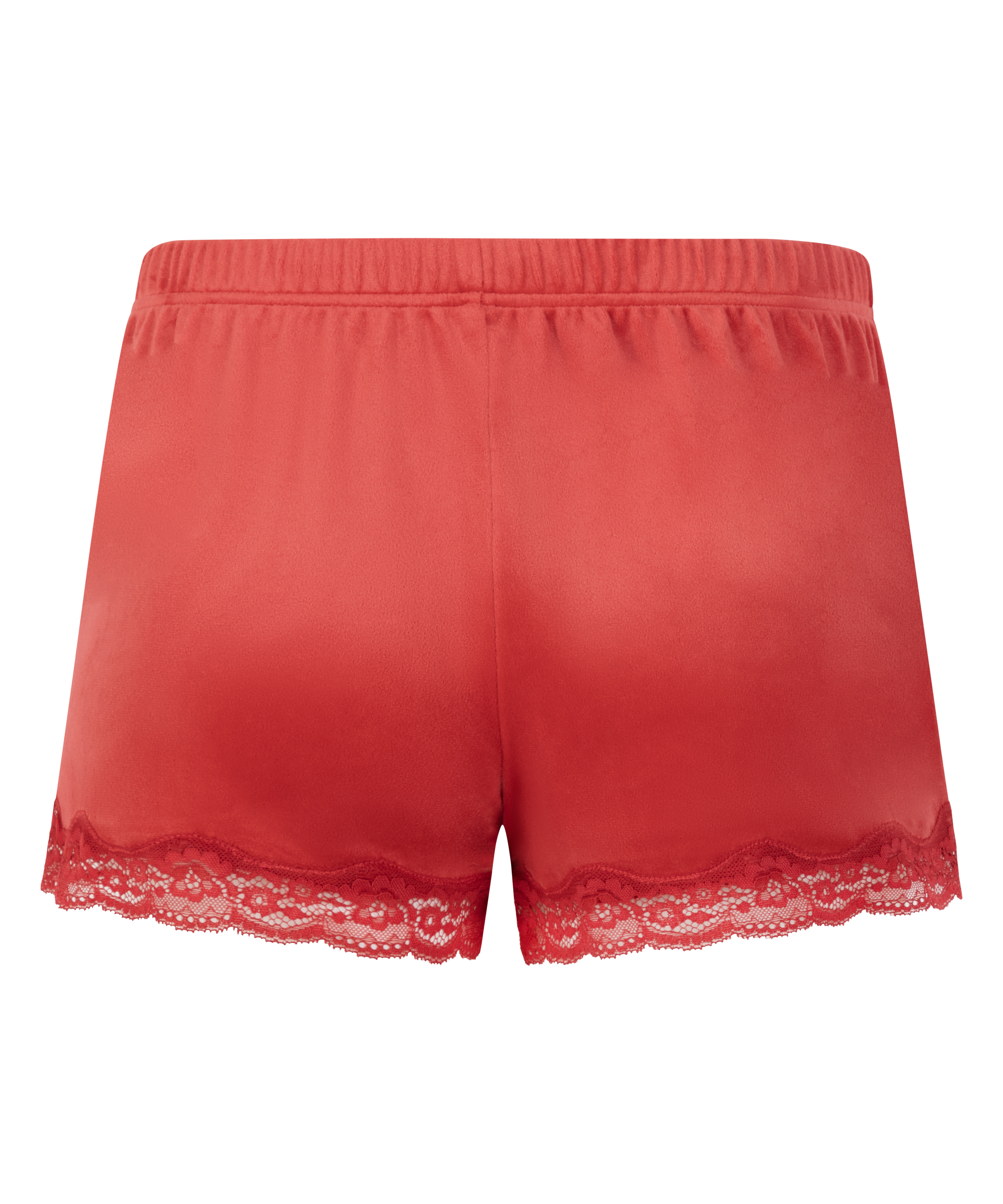 Feel super sexy and feminine in these soft shorts! The shorts are made of velvet fabric and finished with lace. Combine with matching items.