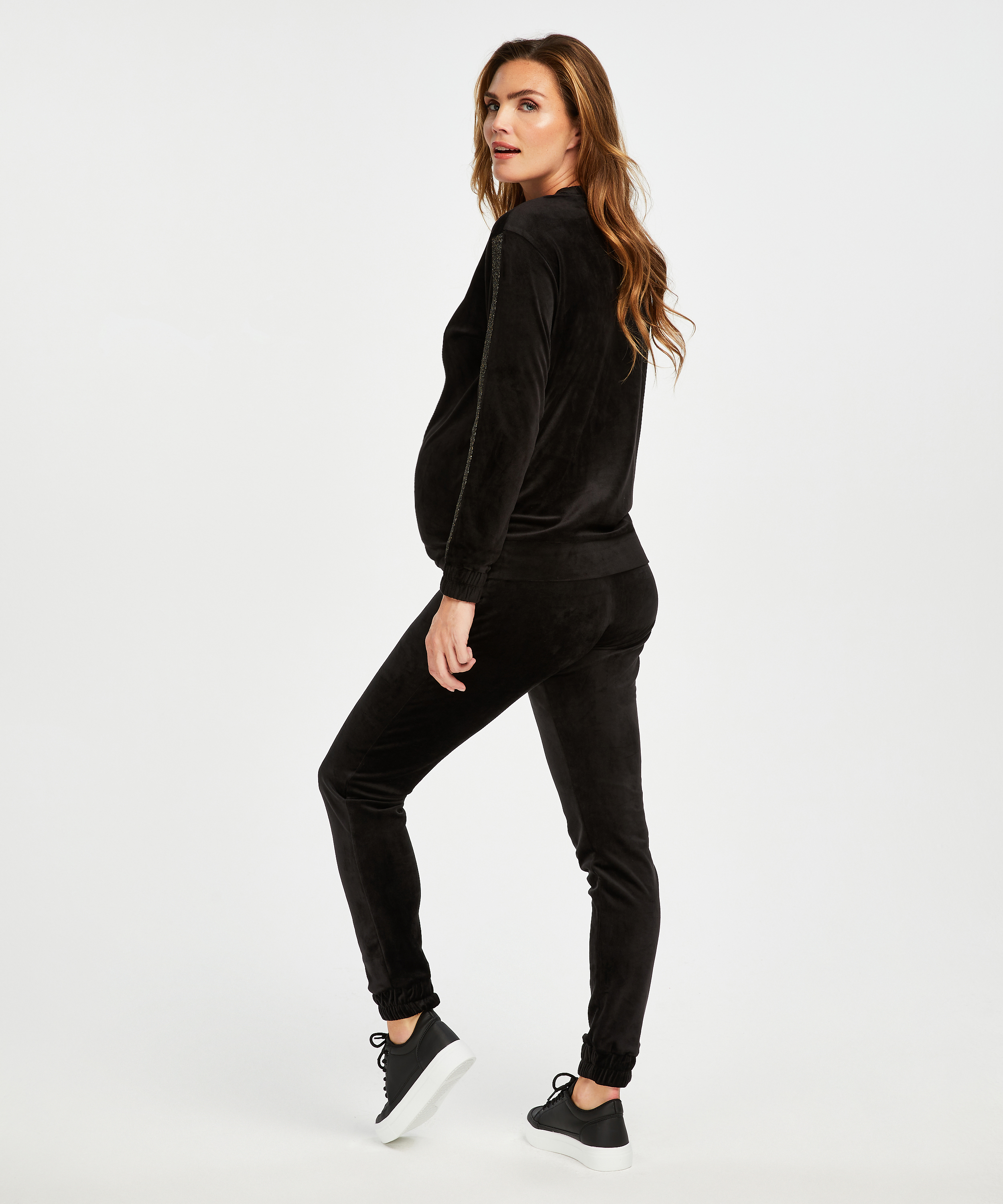 These maternity bottoms are perfect during your pregnancy! It is made of a velvet fabric which makes it very soft and comfortable to wear. The bottoms provide extra support to your belly. Combine with the matching top.
