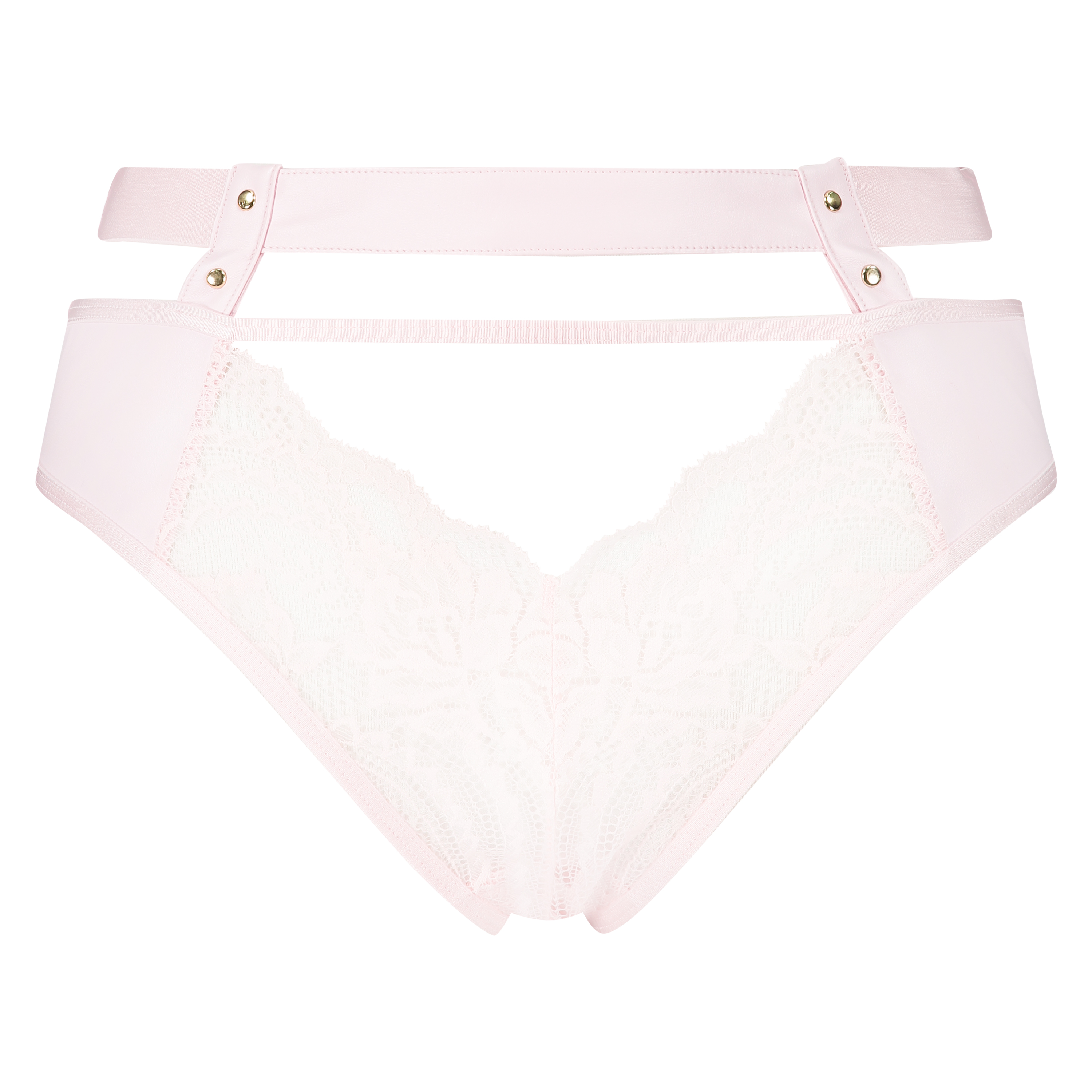 Feel super sexy in this Brazilian! The brazilian is finished with lace and leather detailing! It has an open crotch and a cheeky cut-out detail at the front. The strap at the top is finished with studs. Combine it with a matching bra for a complete set! Part of the Private Collection.