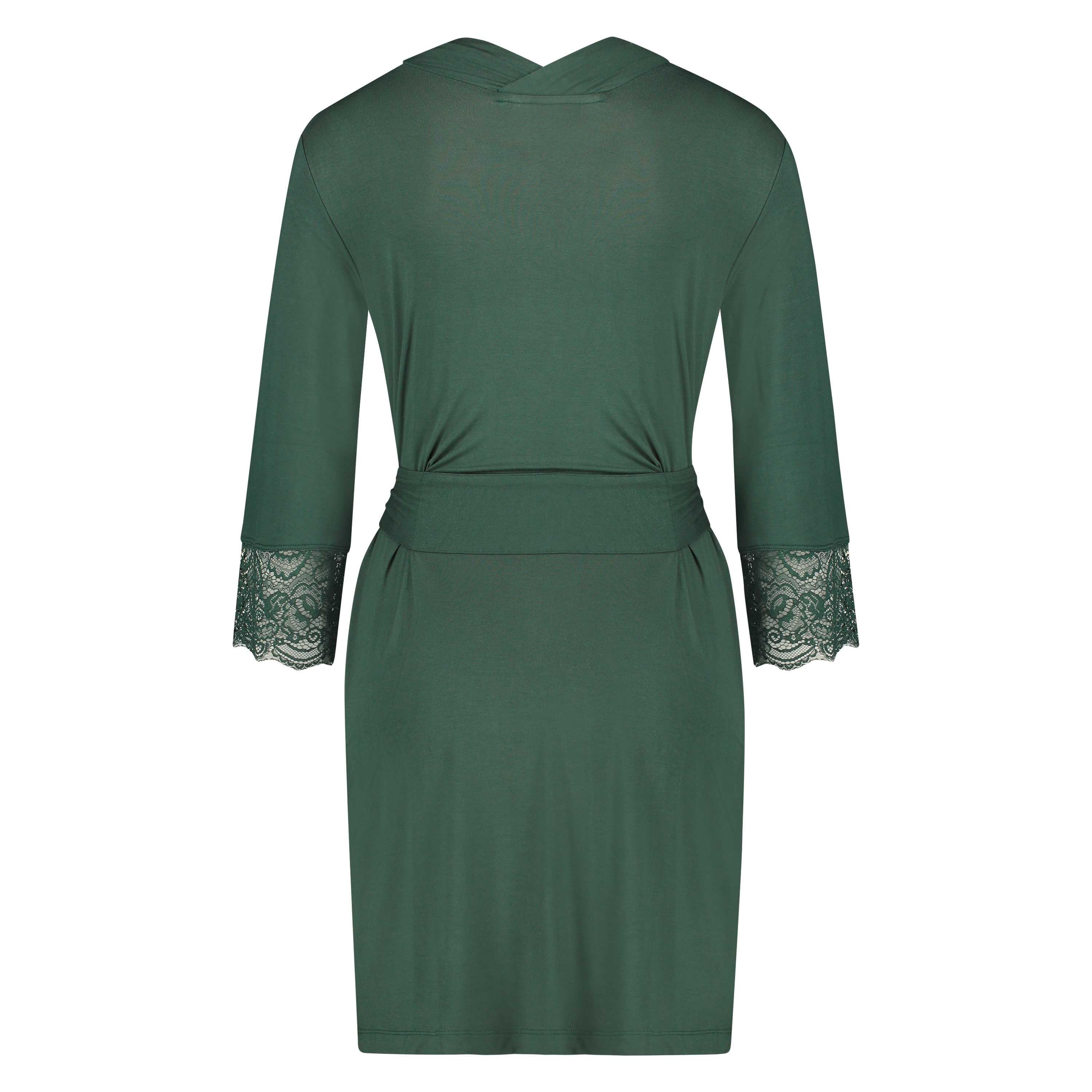 This kimono is perfect for you! The kimono is made of loose jersey material, and is trimmed with lace on the sleeves. This product is made with LENZING™ ECOVERO™ branded fibers that offer customers eco-responsible viscose with low environmental impact. LENZING™ and ECOVERO™ are trademarks of Lenzing AG.