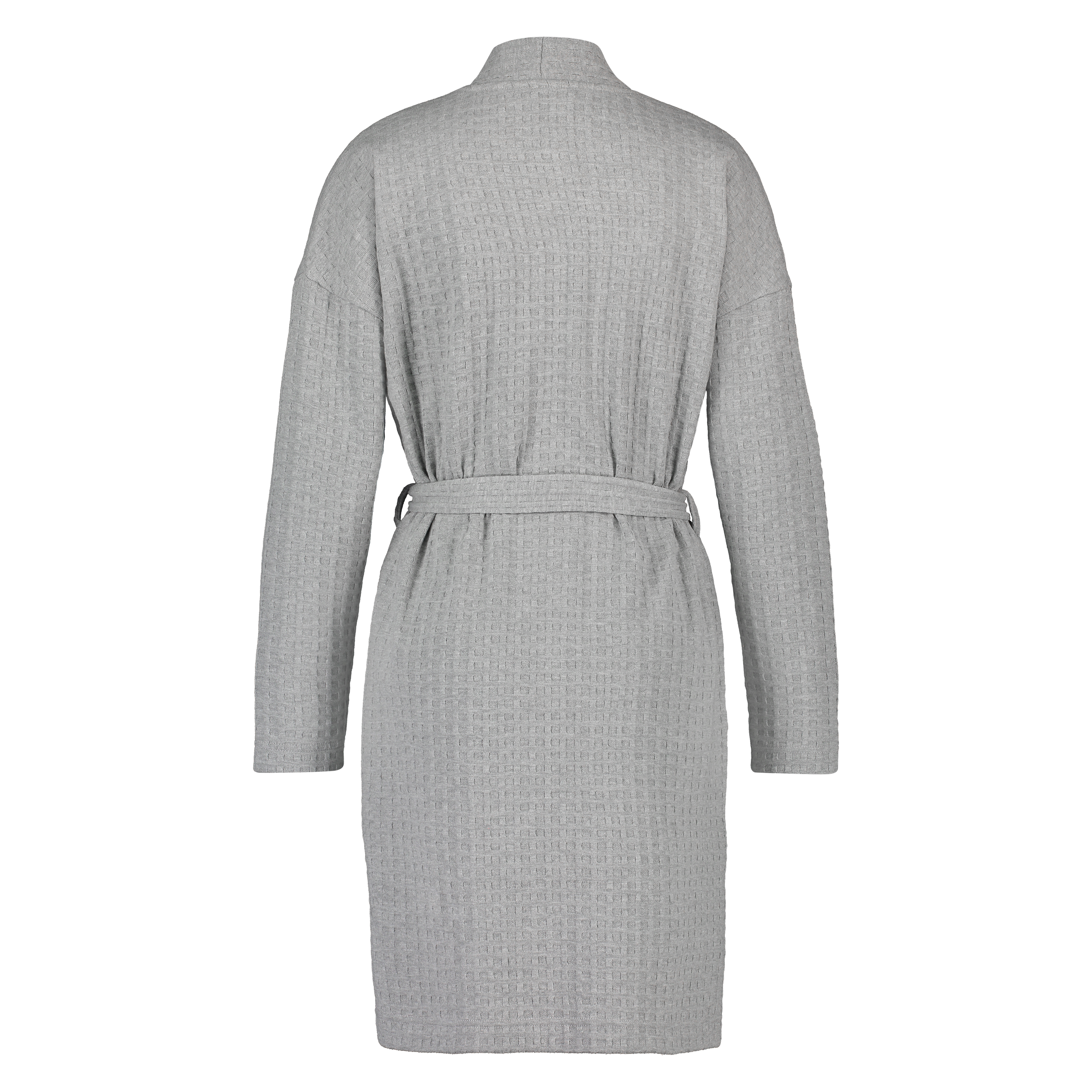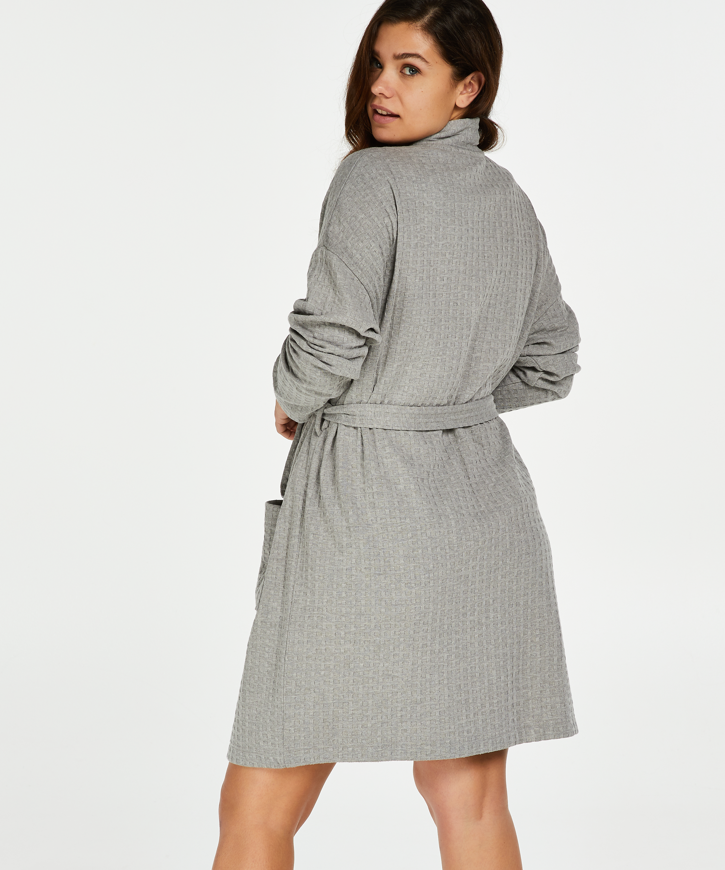 This bathrobe is super comfortable! It is made of a waffle fabric. The bathrobe has an extra cord closure on the inside to keep it in place!