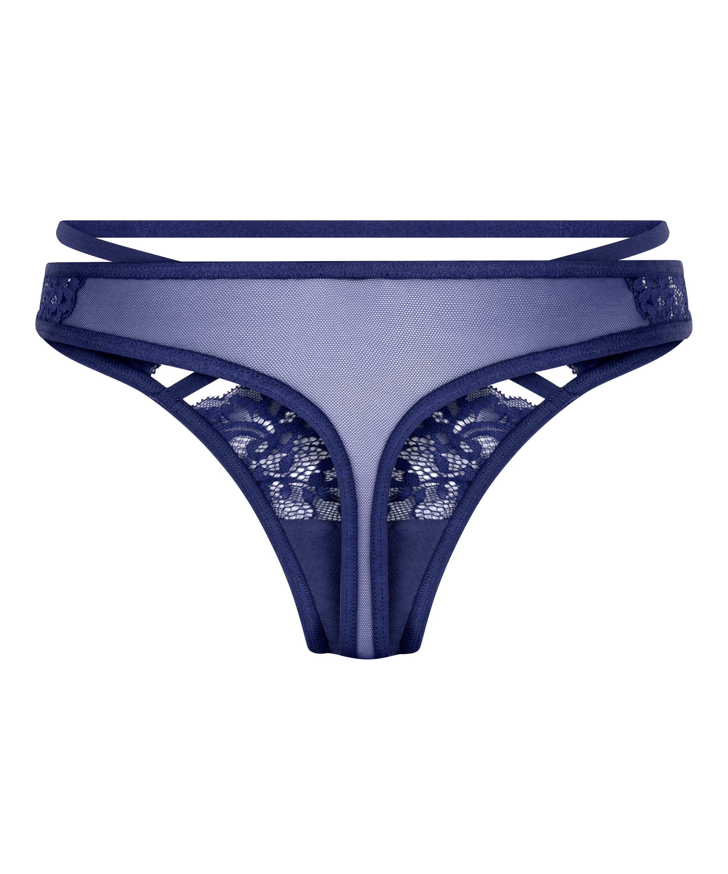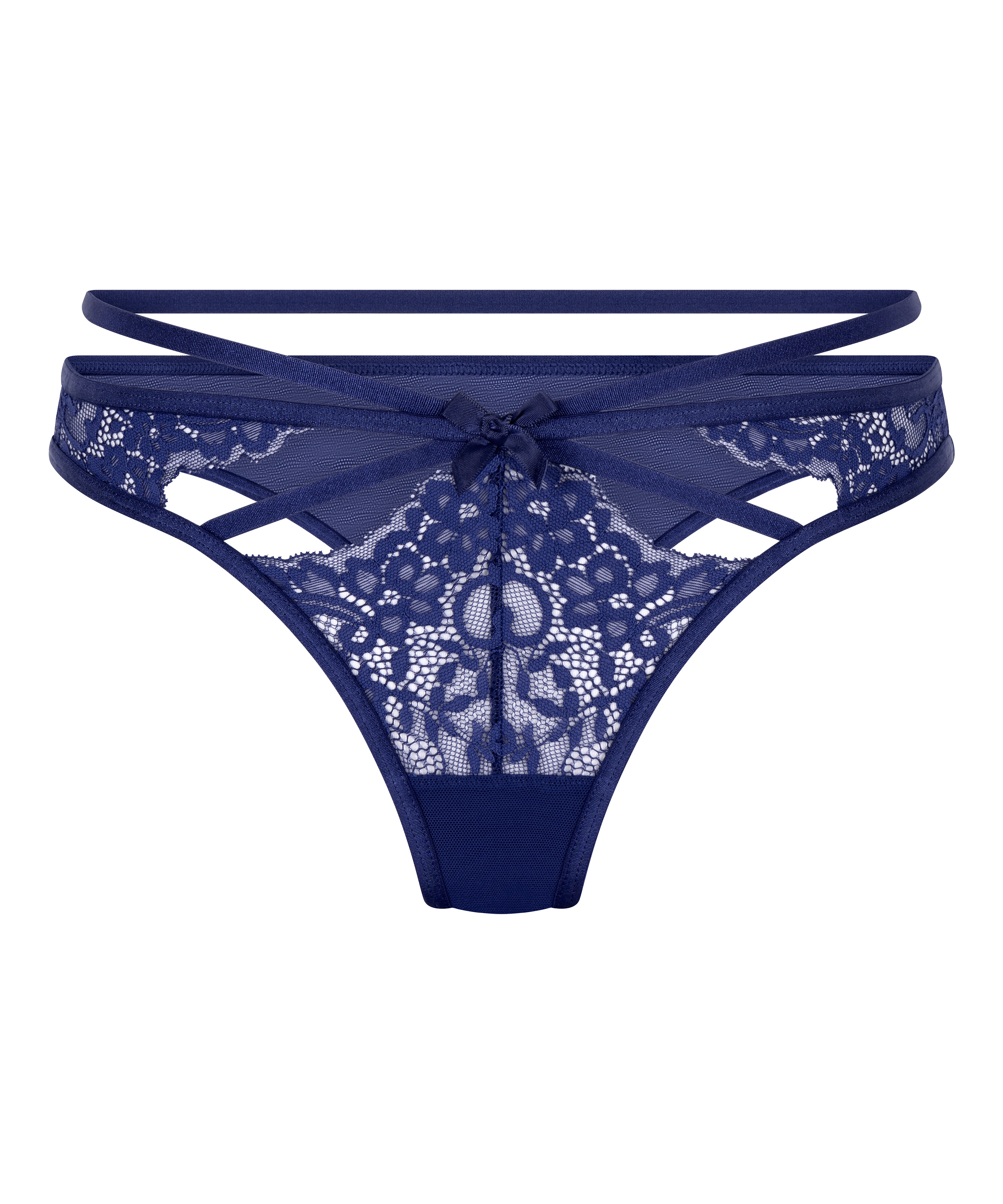 Feel irresistible in this thong! The thong has lots of lace and cut-out details. The thong also has strappy detailing. Combine with a matching bra.