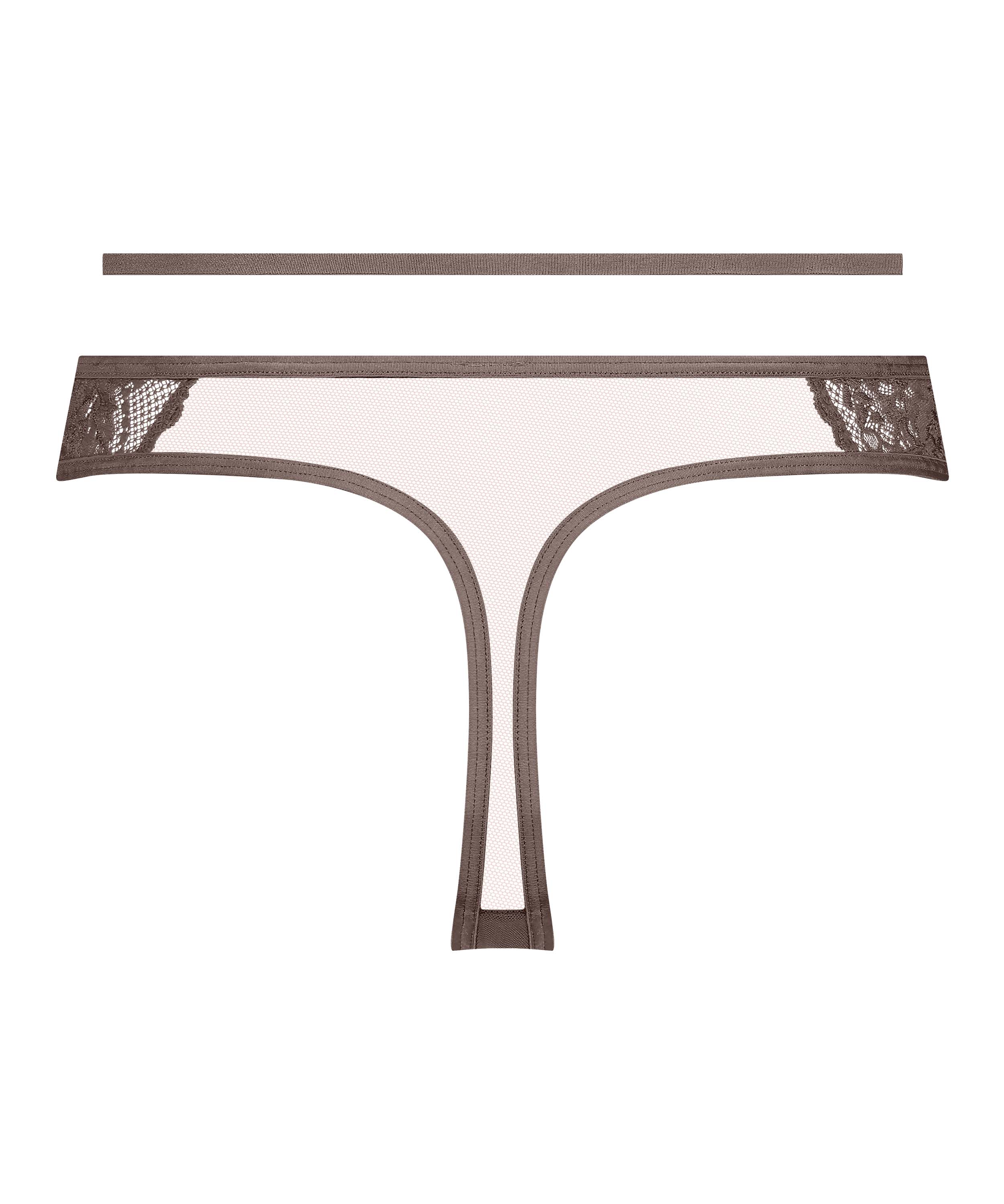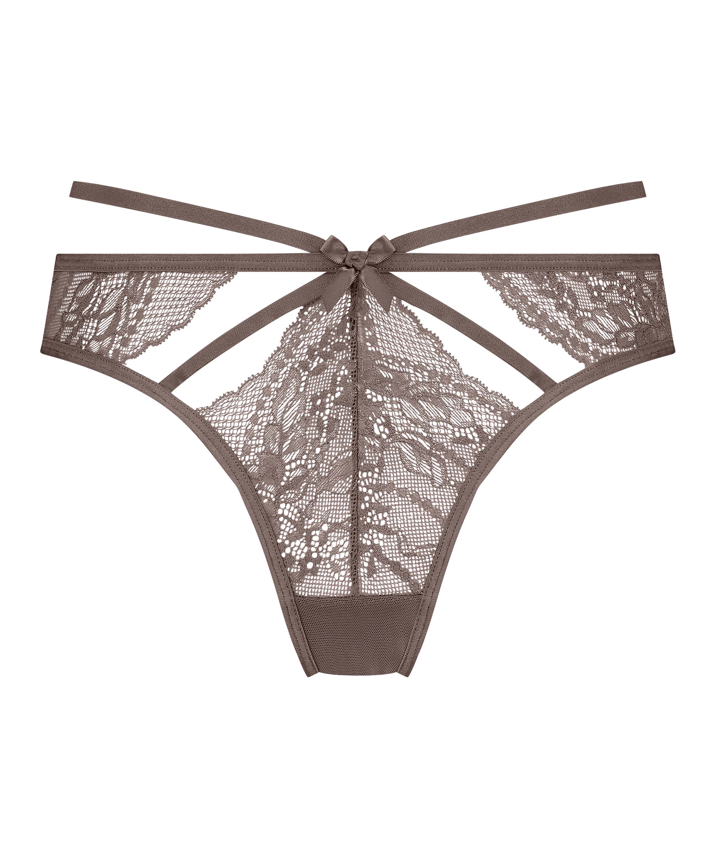 Feel irresistible in this thong! The thong has lots of lace and cut-out details. The thong also has strappy detailing. Combine with a matching bra.