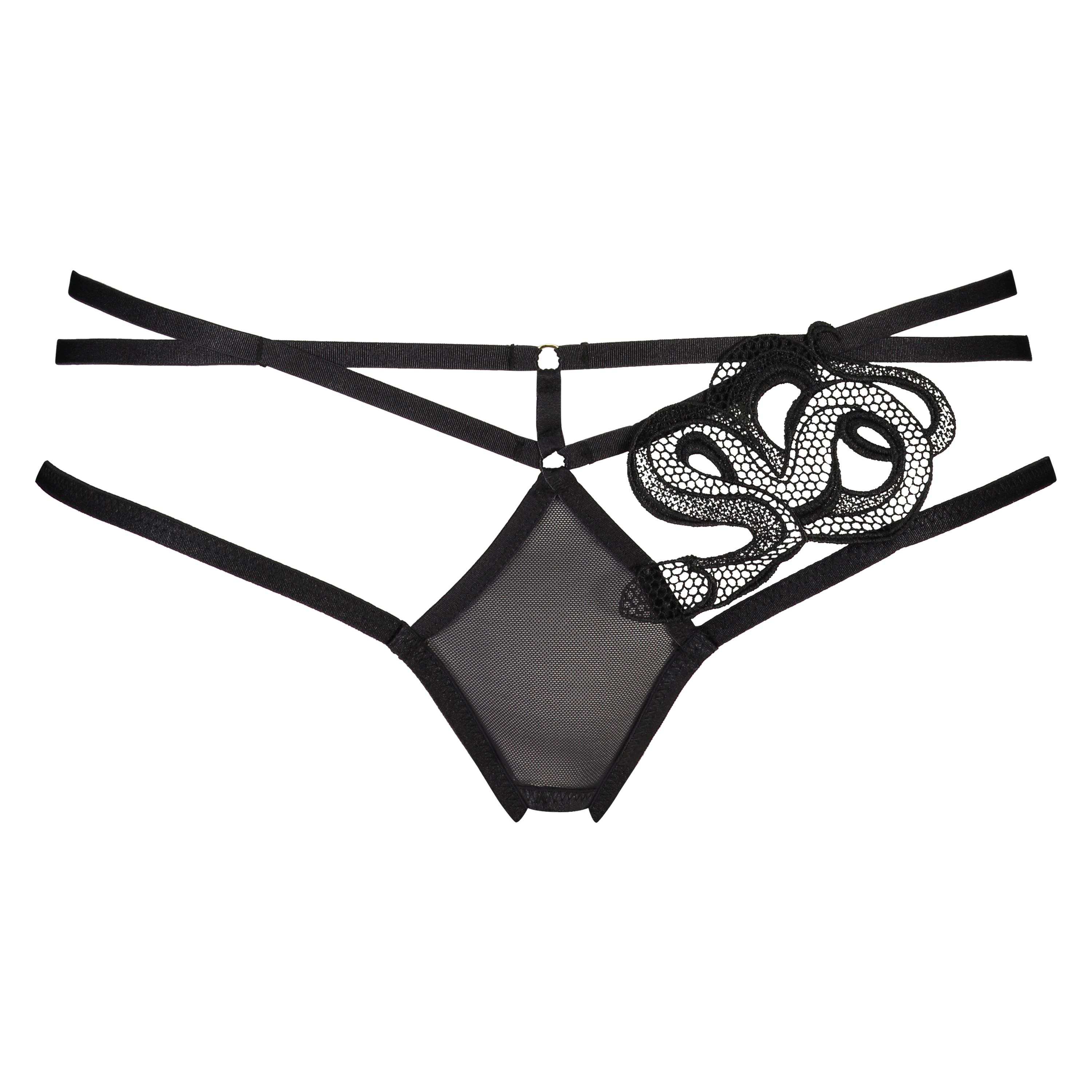 Do you dare? This exciting Brazilian is from our Private Collection. With an open crotch, lots of straps and complete with a snake on the back. Combine with the matching bra.