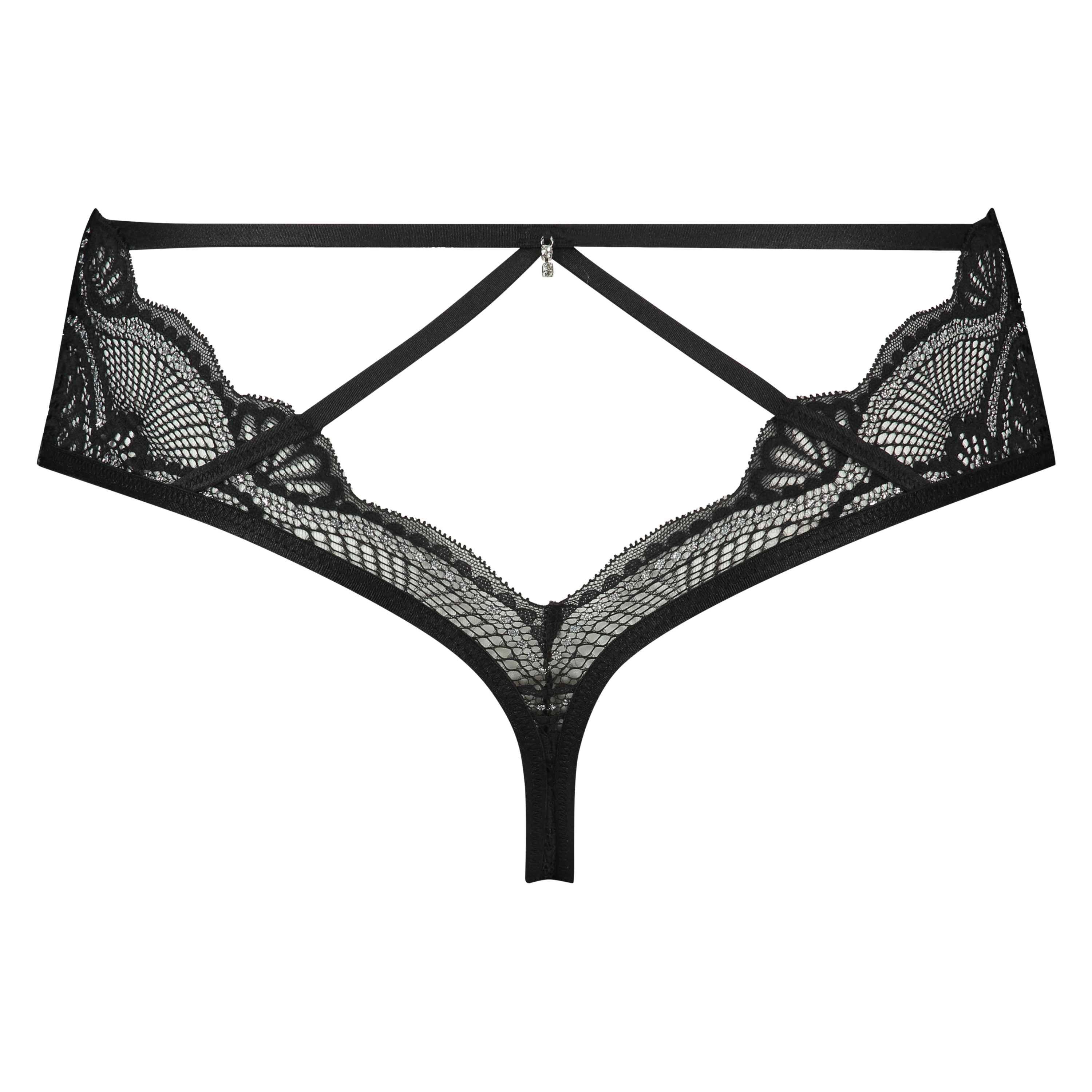 This thong is perfect for an exciting evening with your partner! The thong has a lace and rhinestone trim and strappy details give the thong a higher cut. Combine with the matching bra from the Private Collection!