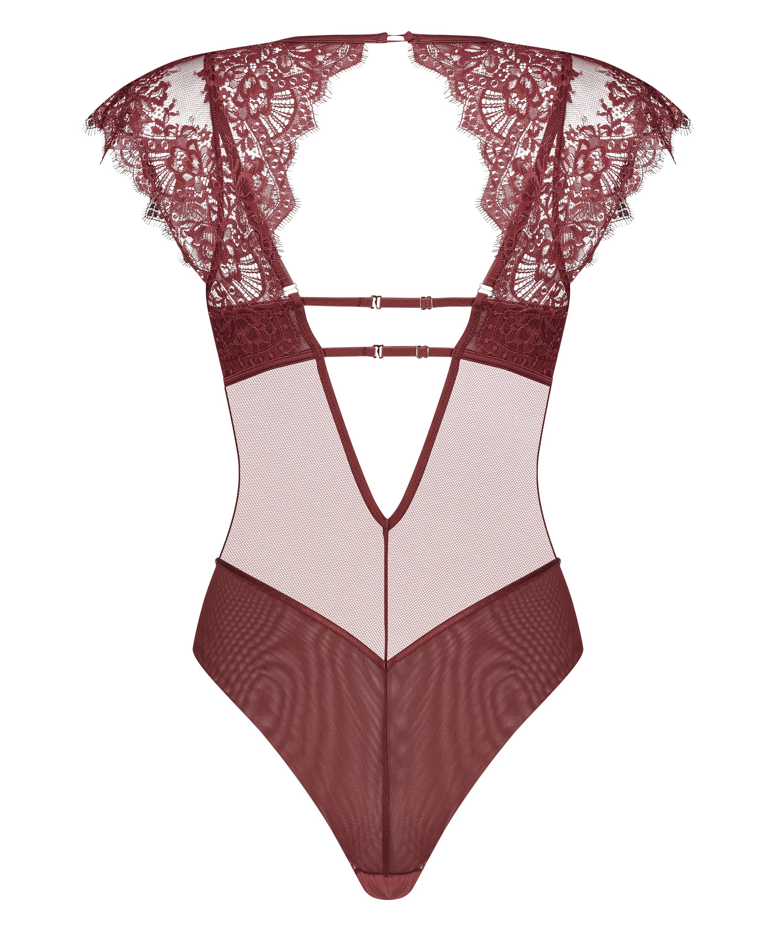 The Zoe bodysuit features short cap sleeves and an open back for a sophisticated, yet daring look. Crafted with delicate, transparent lace, it offers a feminine touch while maintaining a modern edge. The lace's intricate design enhances the bodysuit's allure, blending coverage with sensual transparency. This piece is perfect for elevating any wardrobe, designed with a focus on both comfort and style.