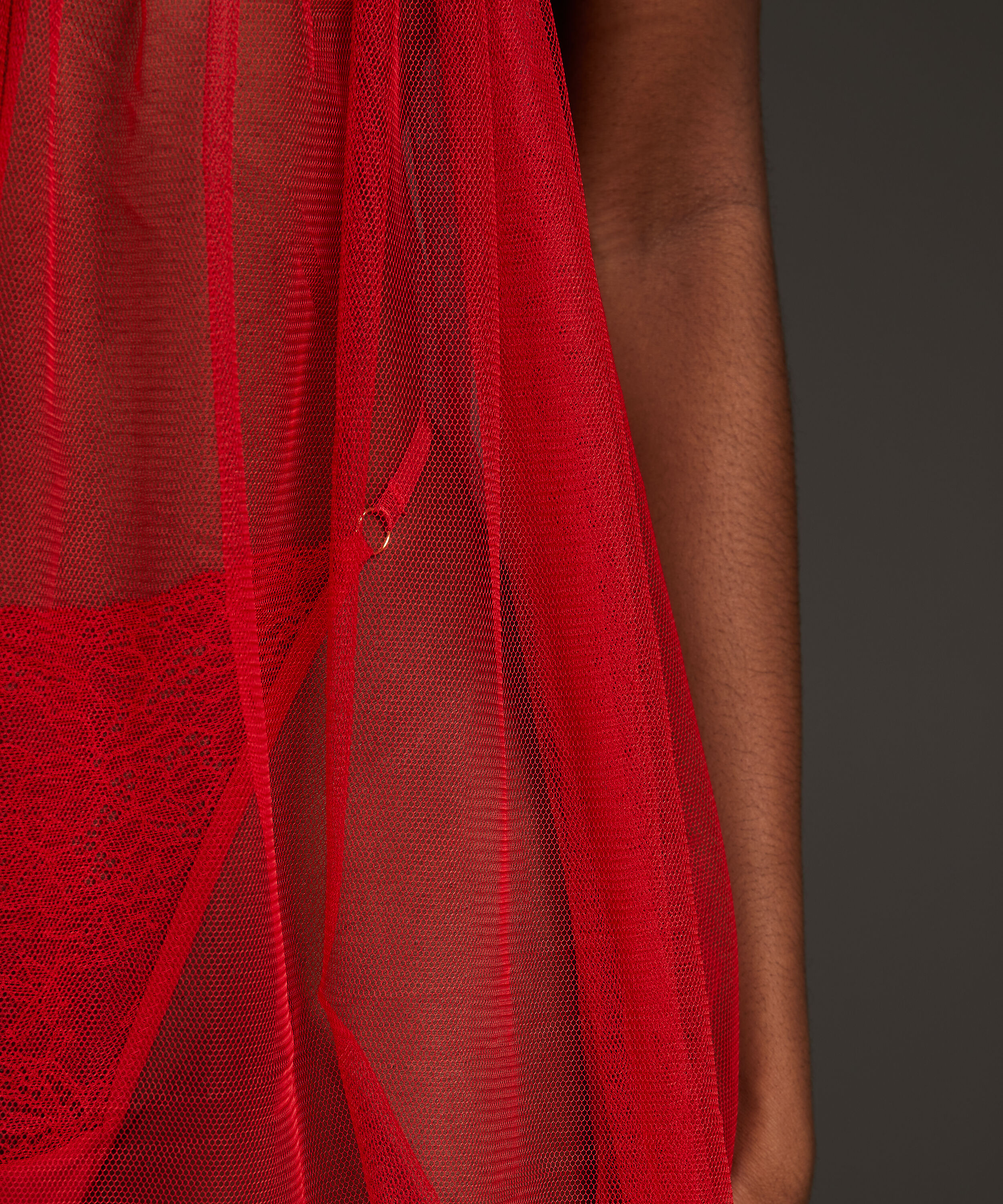 Complete your set with this beautifully finished brazilian. The brazilian has beautifully luxurious detailing made of lace, satin and mesh. This is a high-waisted model. Part of the Noir Collection.